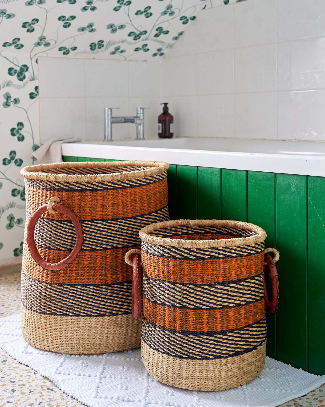 All Sorts Storage Basket with leather bound handle - Pink, orange and natural