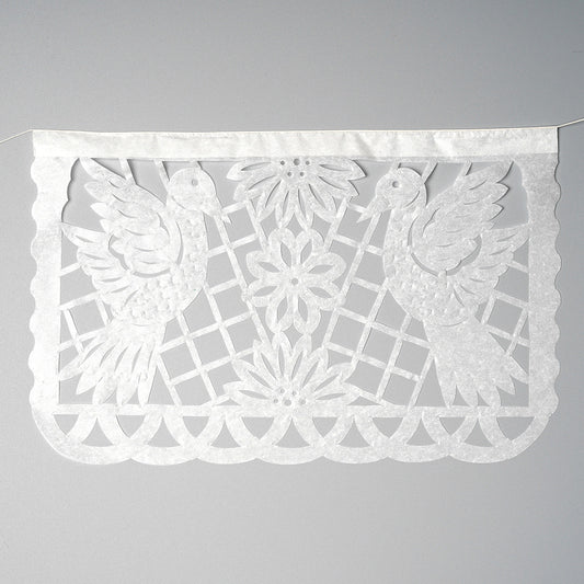 Birds, Hearts and Flowers Papercut Bunting - Small, White