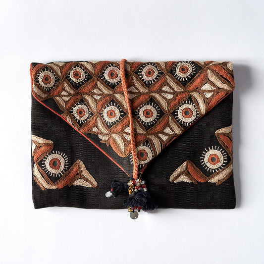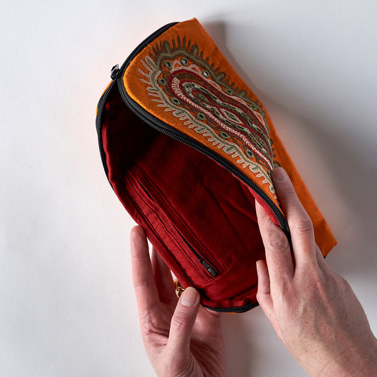 Hand Embroidered Envelope Clutch Bag - Terracotta