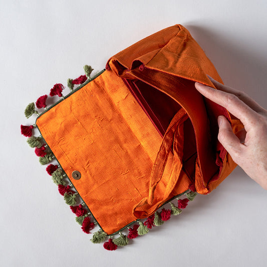Hand Embroidered Silk Clutch Bag (with Handle)