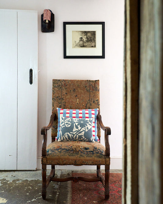 Kala Rama -Hand Appliqued Cushion with Embroidery - Terracotta and Blue