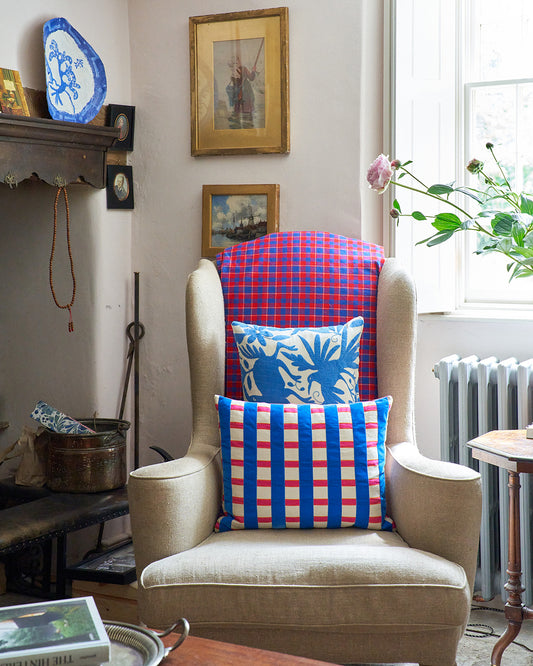 The Velvet Collection, Sunset Stripe Cushion -Cornflower Blue