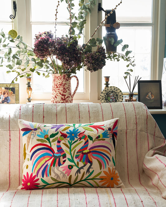 Sold outDark Blue Otomi Artwork- Oak Frame