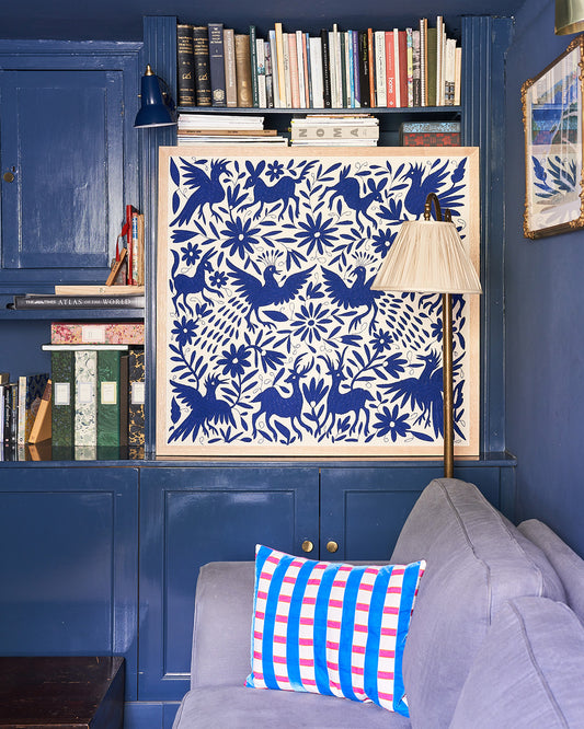 Sold outDark Blue Otomi Artwork- Oak Frame