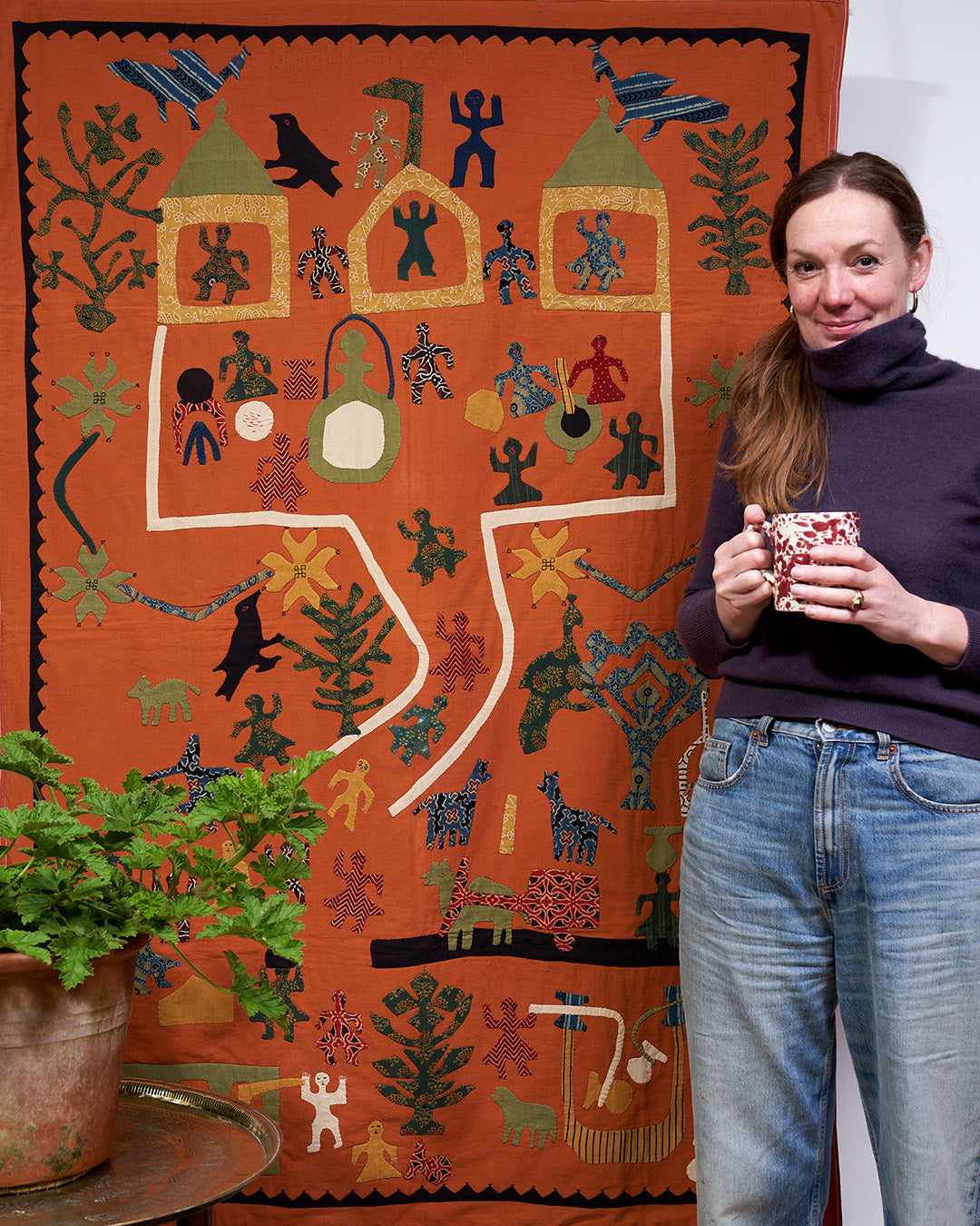 We could not resist buying this joyful wall hanging. A large, beautifully worked and expertly designed piece of narrative applique.