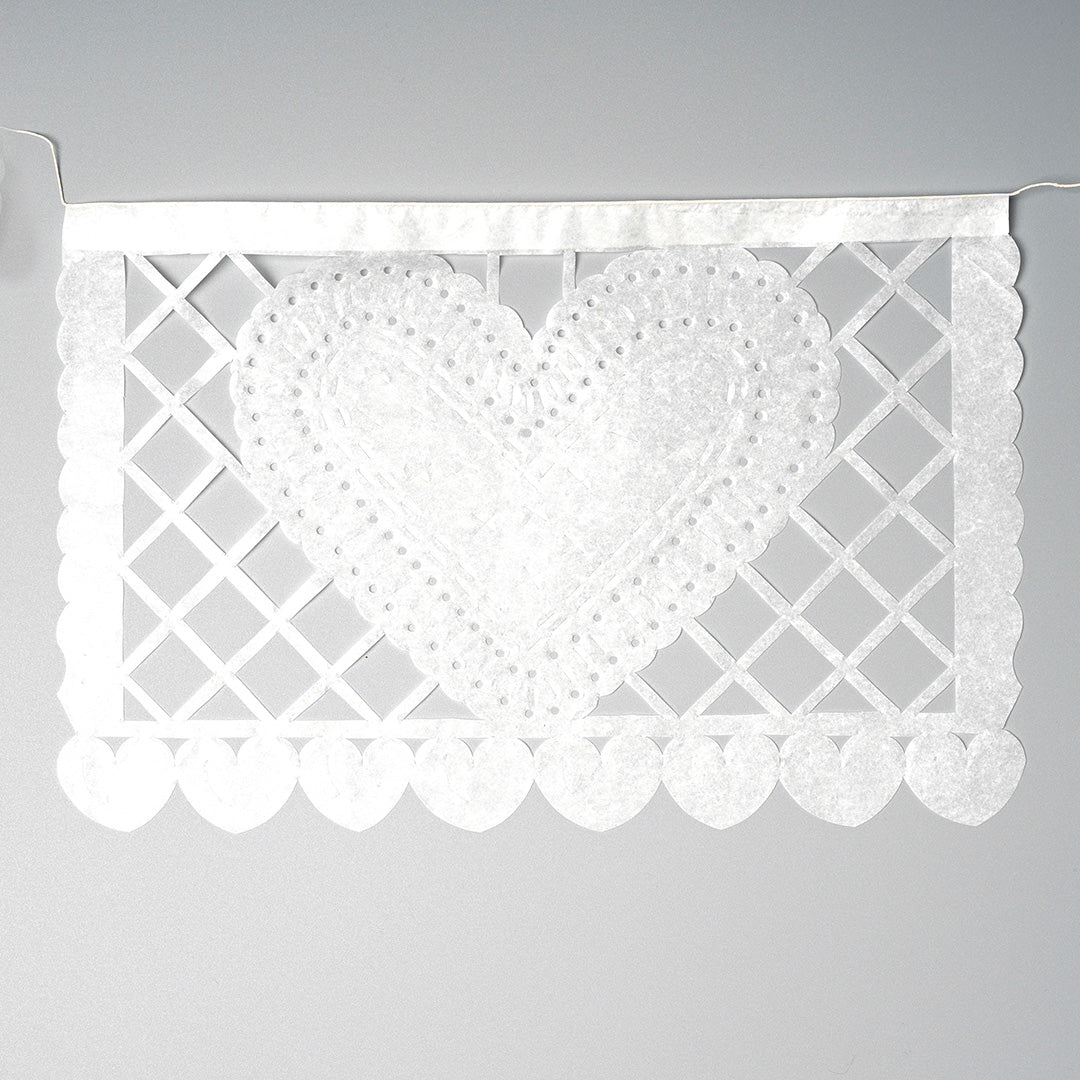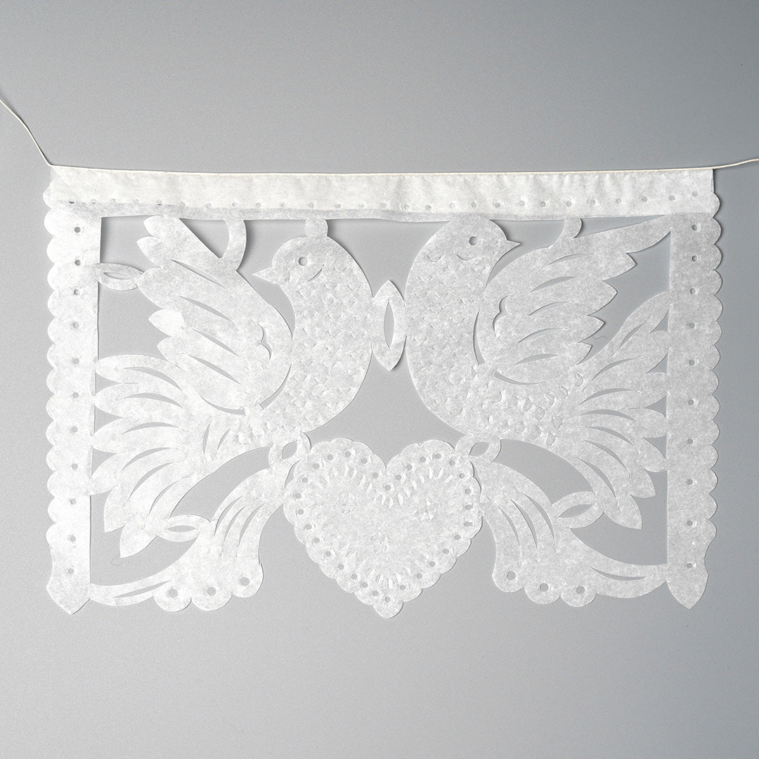 Birds, Hearts and Flowers Papercut Bunting - Small, White