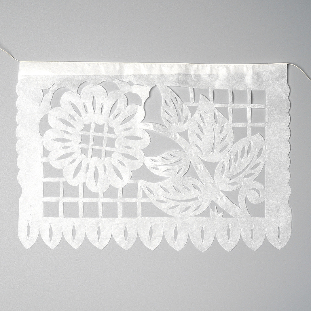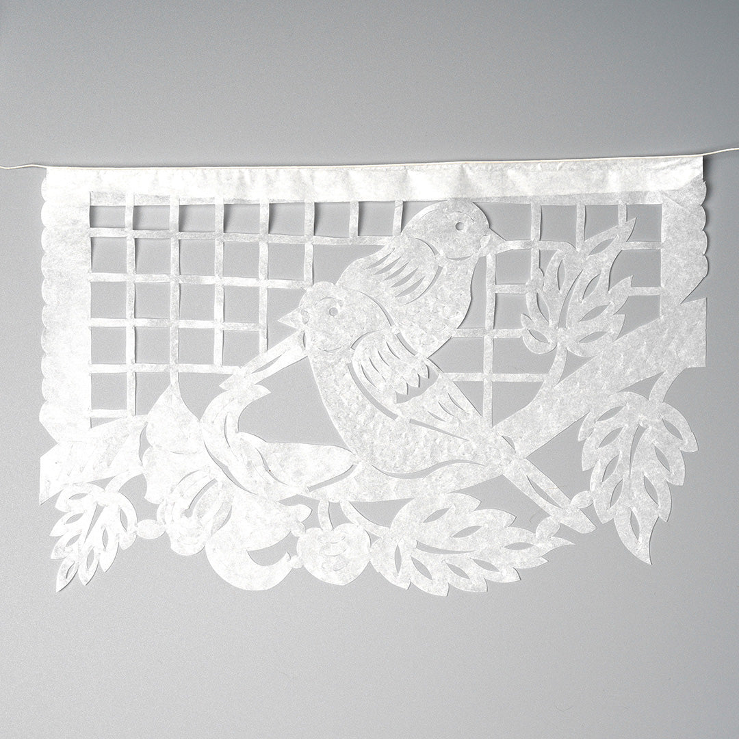 This wonderful string of paper bunting has been hand cut with a chisel and hammer by a paper cutter in Mexico.