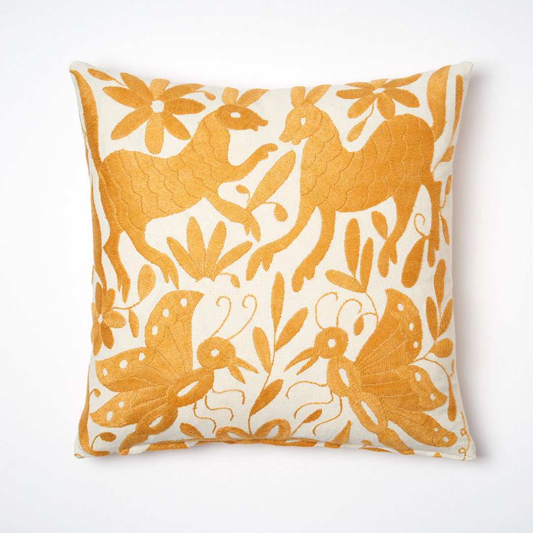 Front of Cushion is Hand Embroidered in an amazing woman's Cooperative in Mexico and finished in our workshop in Wiltshire. The embroidery is worked in cotton on a cream cotton fabric. Please see our makers page for more details