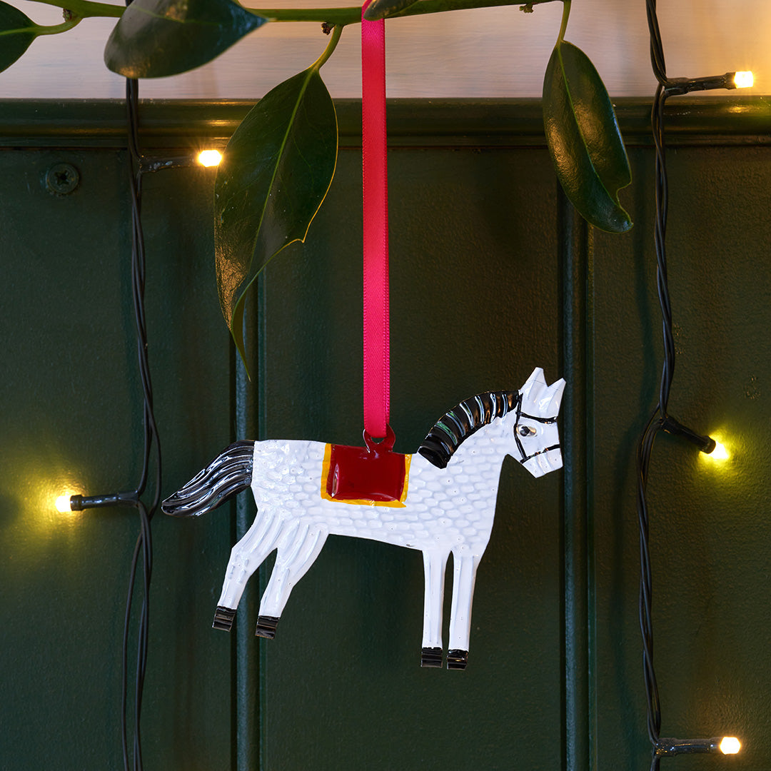 Handmade Horse with Saddle Tin Decoration - Multicoloured