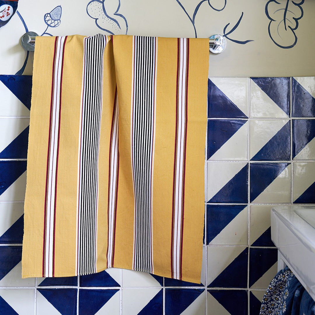 Spice Stripes Hand Towel - Yellow, black, white and red