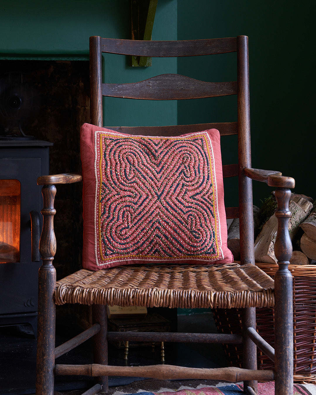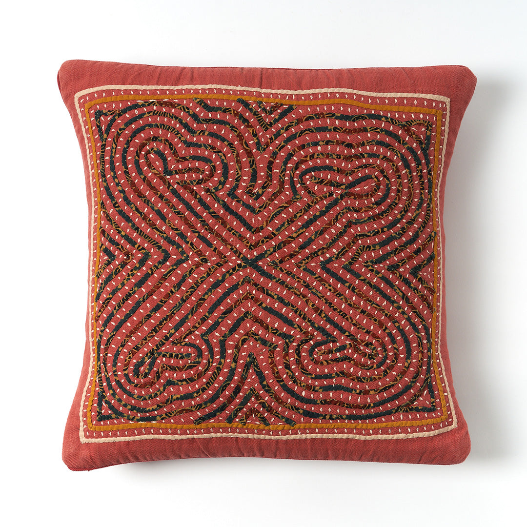 Kala Rama -Hand Appliqued Cushion with Embroidery - Terracotta and Blue