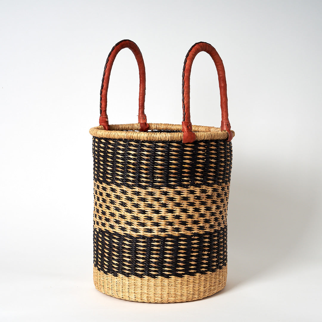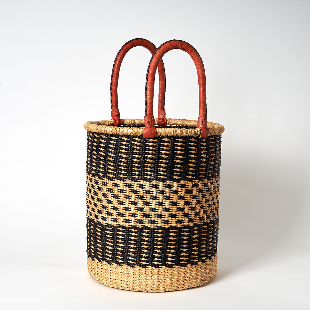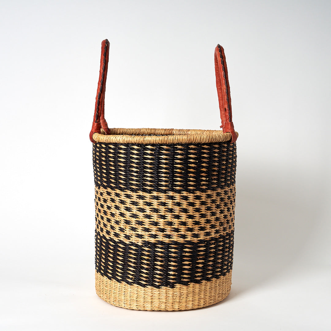 Woven Straw Basket with beautifully bound leather handles. Another great storage solution, kindling, lego, loo rolls.............the list goes on.