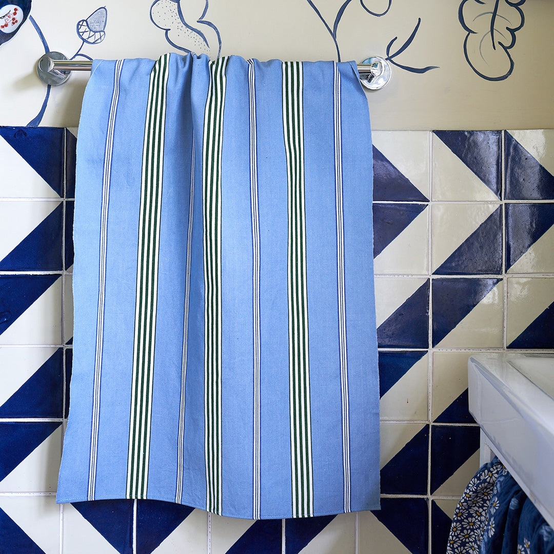 Powder Blue Stripes Hand Towel - Blue, Green & White